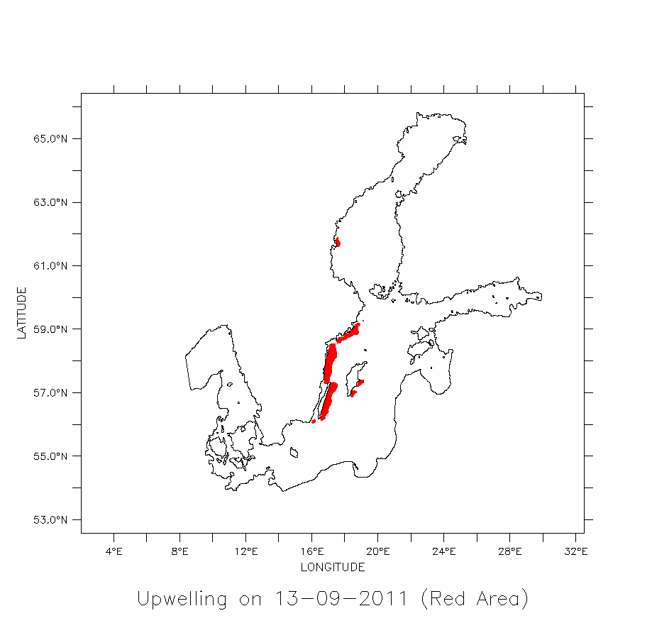 Upwelling was detected, if temperature at a specific pixel differed from corresponding mean value by more than a threshold of 2°C.